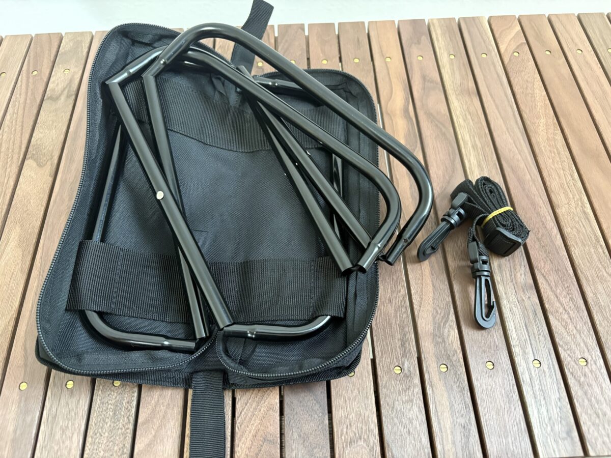 畳み方にクセはあります。まだ私は慣れていないんですが、それでも一、二分で終わります。収納袋が座面と一体化しているのも便利で、紛失する心配がないんですよね。