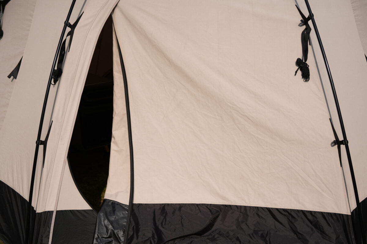 ポリコットンテントを使っているため結露が内側に落ちにくく、化繊の「濡れに強い」という特性が活きる場面もそれほど多くはありませんが、「万が一のとき怖くない」という安心感は地味に大きいです。