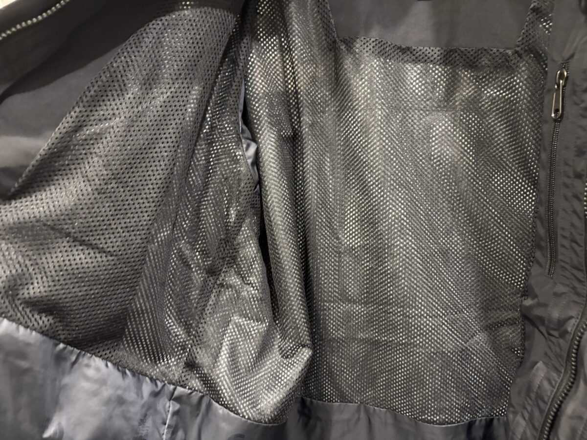 もう一つの大きな特徴が、ZIP IN ZIPシステム対応という点です。フロントジップの内側に専用ファスナーがあり、対応するインナーウェアを連結できます。
