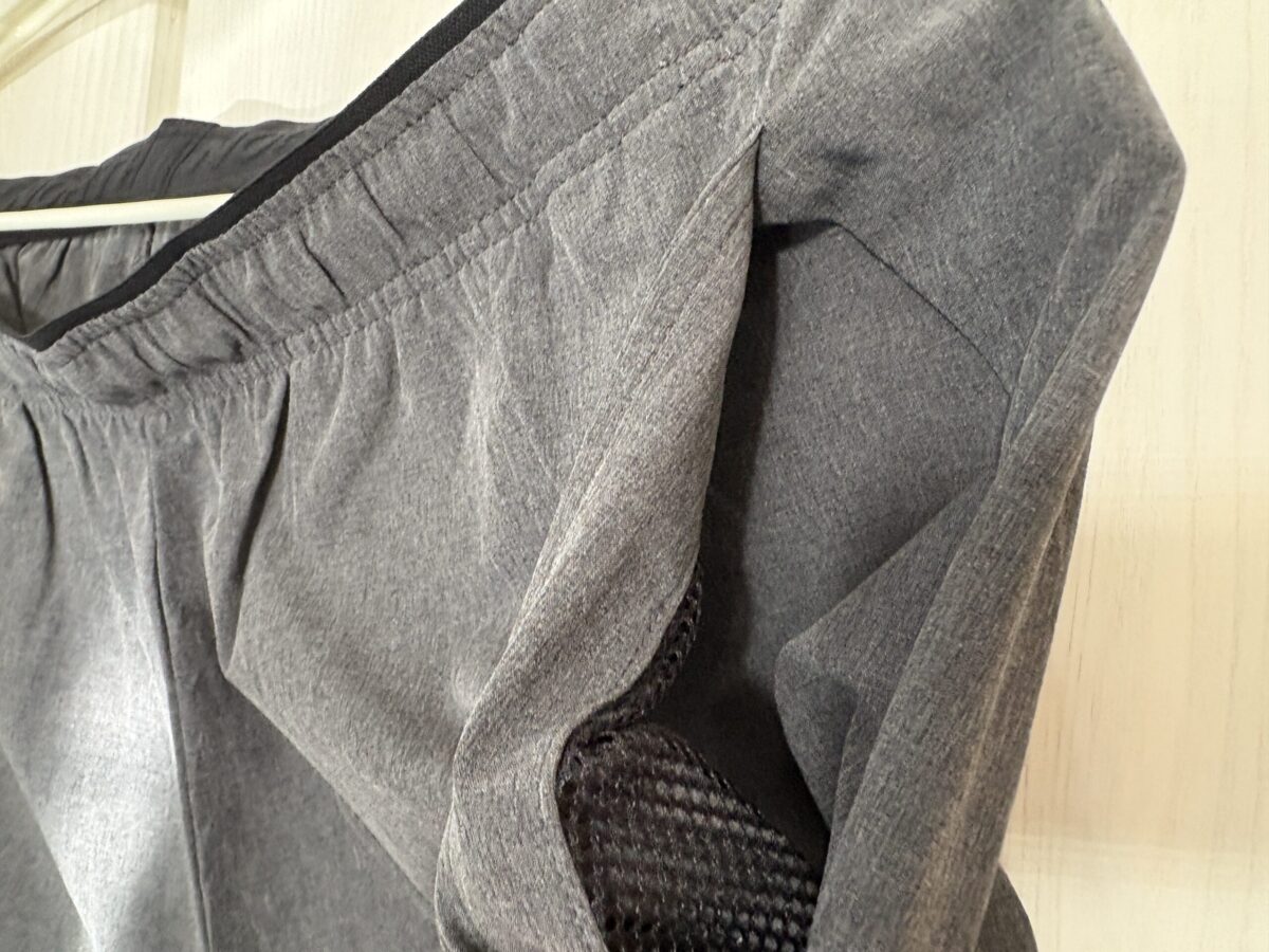 リサイクル素材を使った2ウェイストレッチ生地(ナイロン85%、ポリウレタン15%)を採用しているのですが、これが本当に動きやすい。