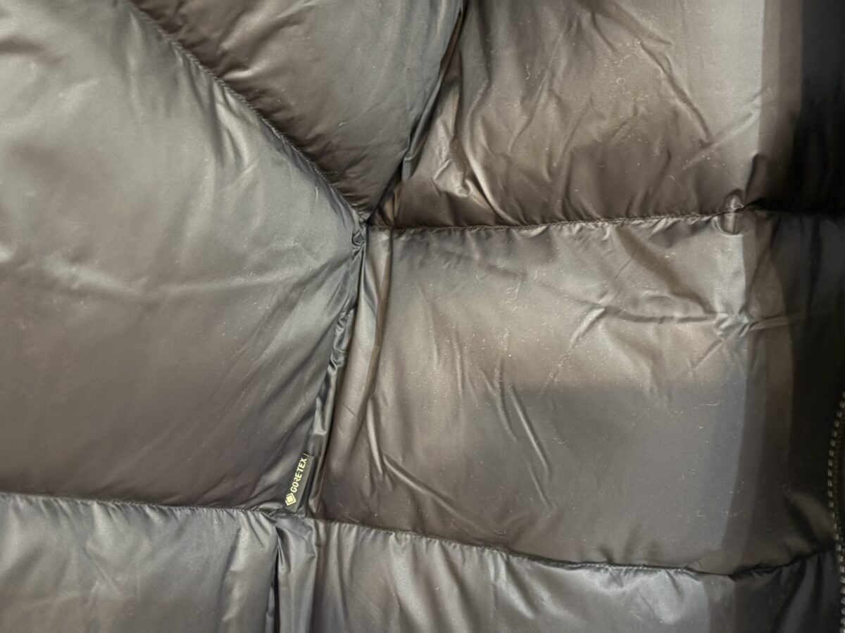 このコートの最大の特徴は、GORE-TEXによる防水・防風・透湿性能です。雪や雨の日でも安心して着用できますし、汗をかいても蒸れにくい設計になっています。