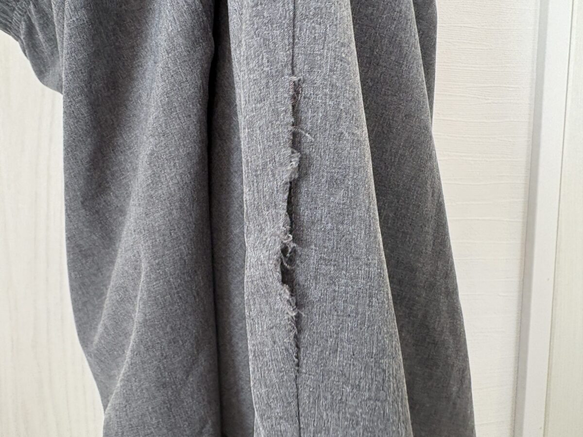 実はこのパンツ、私も愛用しているモデルです。ストレッチ性と膝下のテーパードシルエットが絶妙で、ルームウェアレベルの楽さなのに見た目がスラックスのようにスマート。気に入りすぎてヘビーローテーションしていたら、先日ついに破れてしまいました。