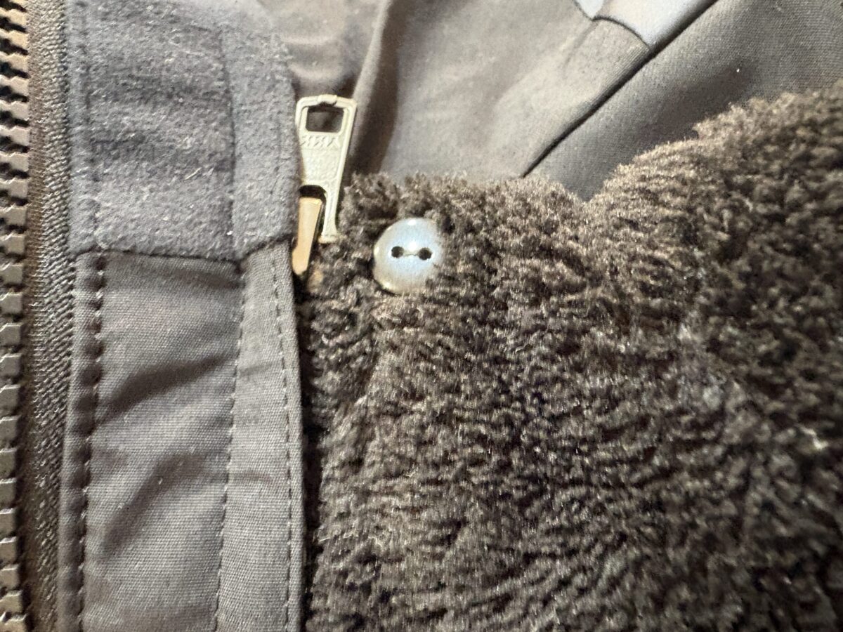 外側のアウター(シェルジャケット)の内側にファスナーが付いていて、そこに専用のインナー(フリースやライトダウン)をガチャンと連結するだけ。1枚の防寒ジャケットが完成します。