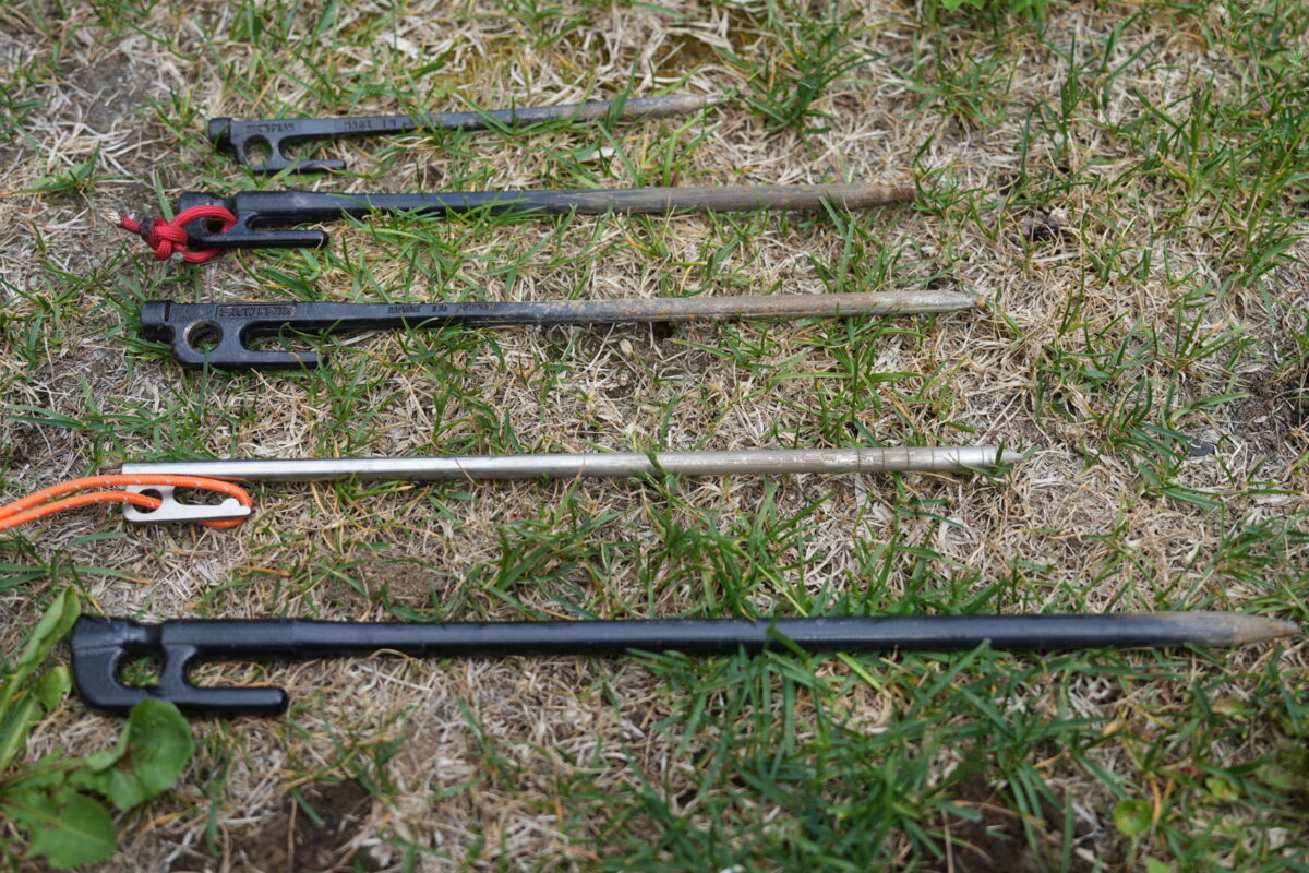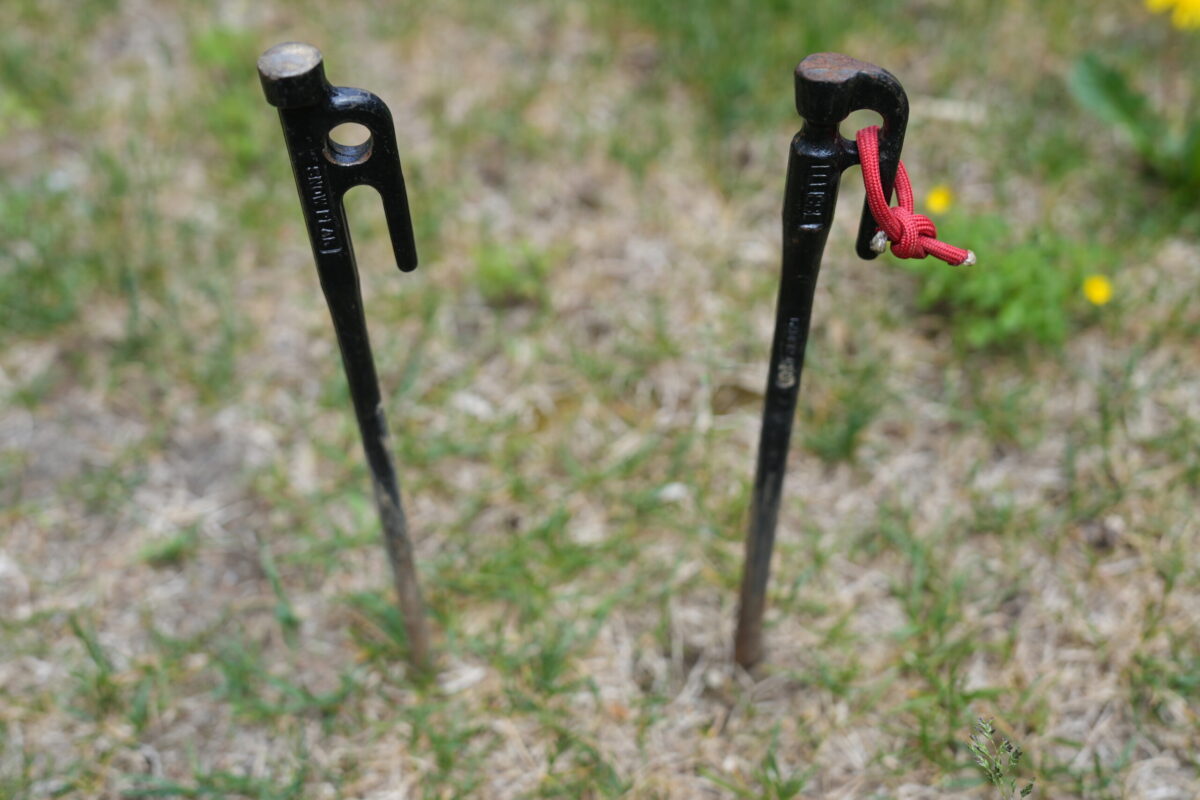 ただ、他のペグと比べると話が全然変わります。チタンペグも試したことがありますが、この2本は別格です。適度な重みと食い込みの感触、安定感のレベルが明らかに違う。硬い地面でも、柔らかめの土でも、この2本はちゃんと働いてくれます。